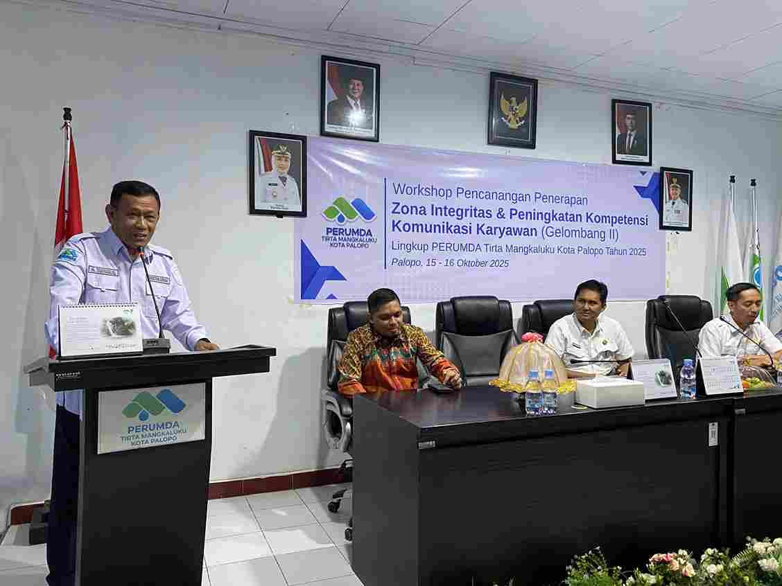 Palopo– Komitmen Perusahaan Umum Daerah (Perumda) Tirta Mangkaluku (TM) Kota Palopo untuk membangun tata kelola perusahaan yang bersih, profesional, dan berorientasi pada pelayanan publik kembali dibuktikan melalui penyelenggaraan Workshop Pencanangan Penerapan Zona Integritas dan Peningkatan Kompetensi Komunikasi Karyawan Gelombang II, yang berlangsung pada Rabu (15/10/2025).